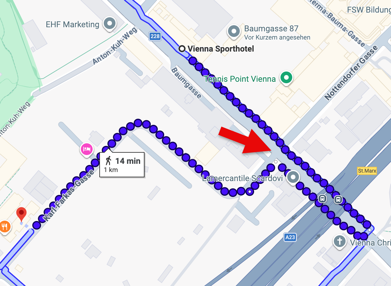... muss ich wirklich die komplette Strecke so wie angezeigt laufen? Oder kann ich einfach an der Rot markierten Stelle über die Straße gehen und so einen guten Teil des Wegs sparen? #IchFrageFürEinenFreund